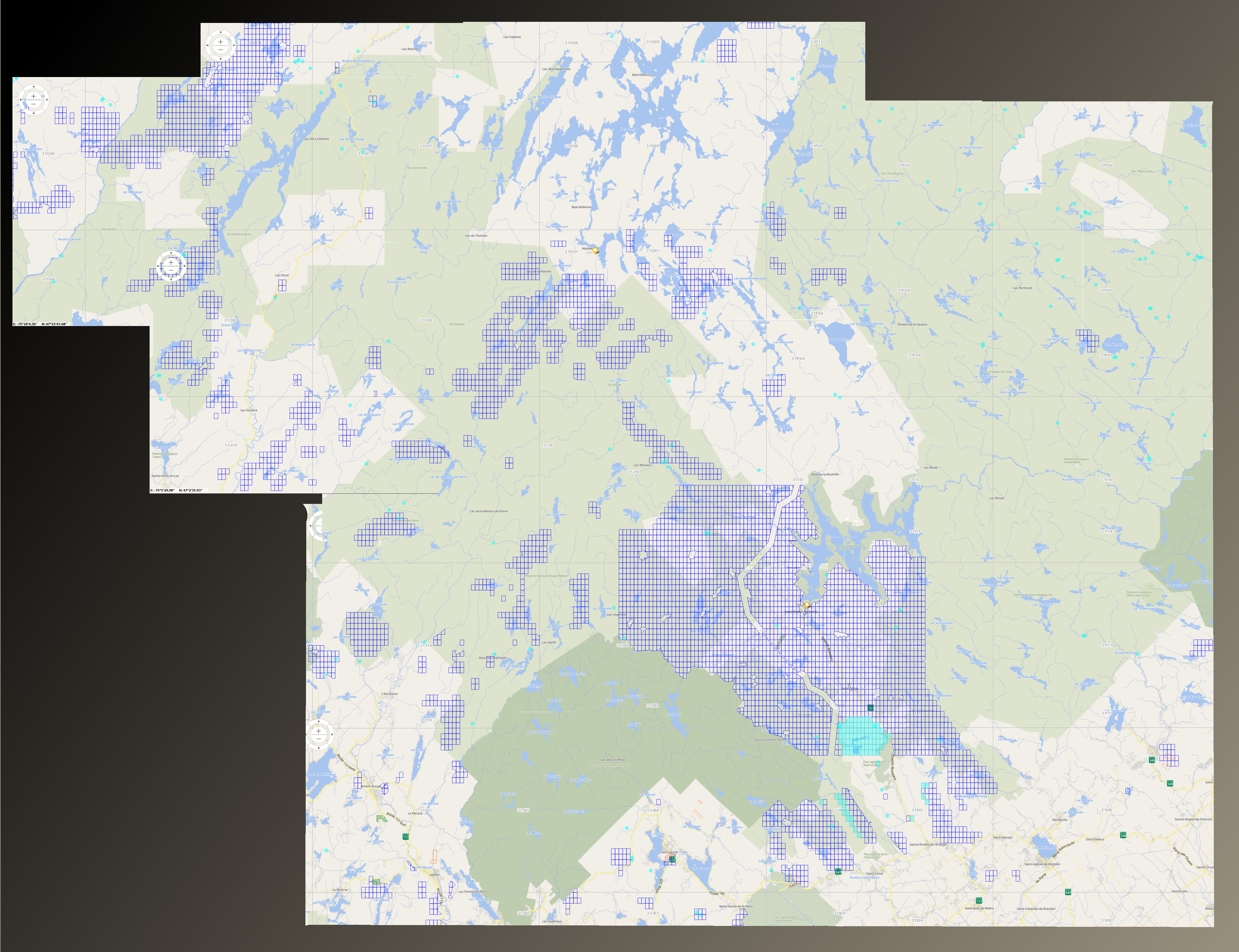 Carte des claims actifs au 1 février 2023 dans la région de Saint-Michel-des-Saints et de Manawan.